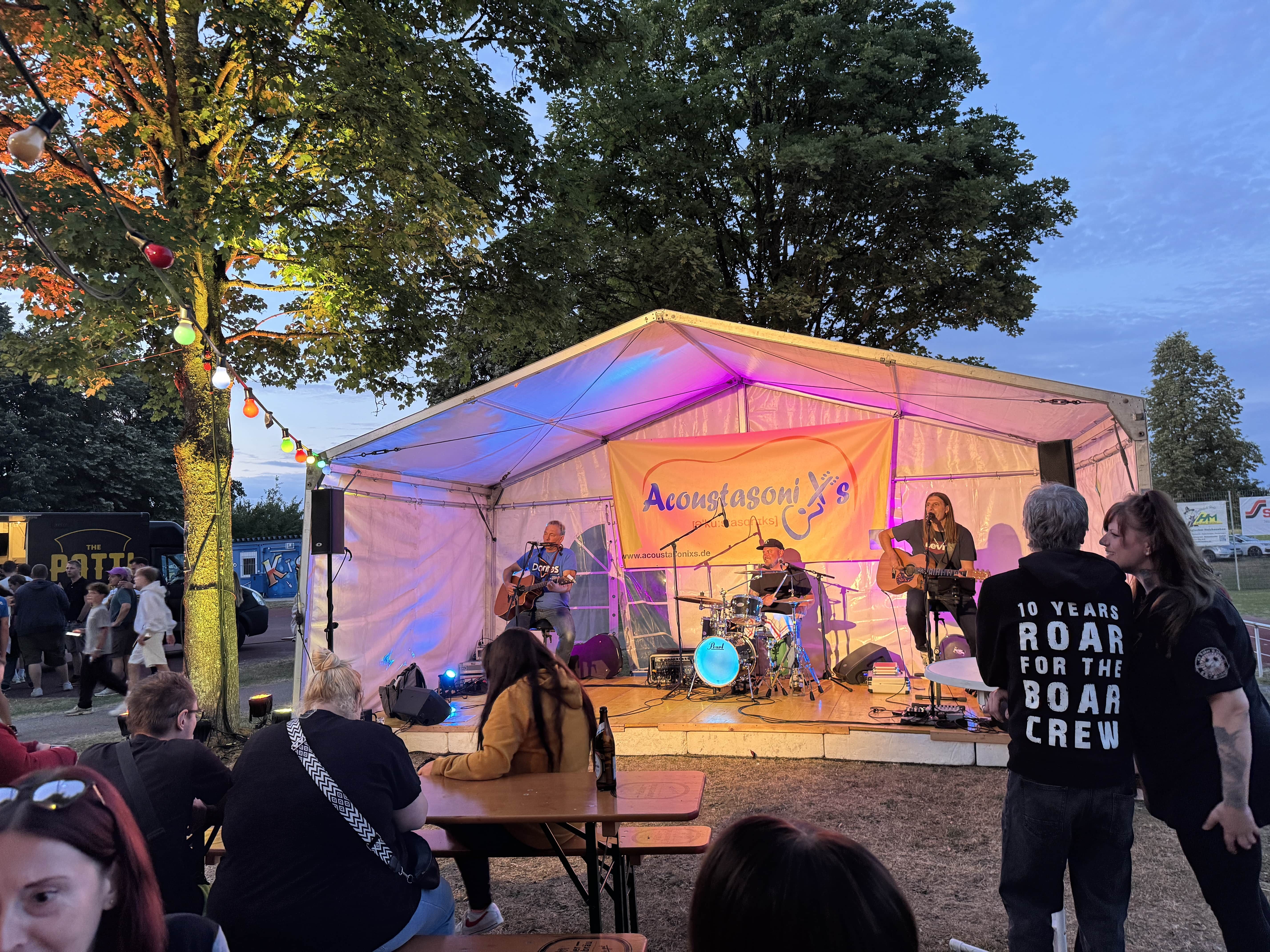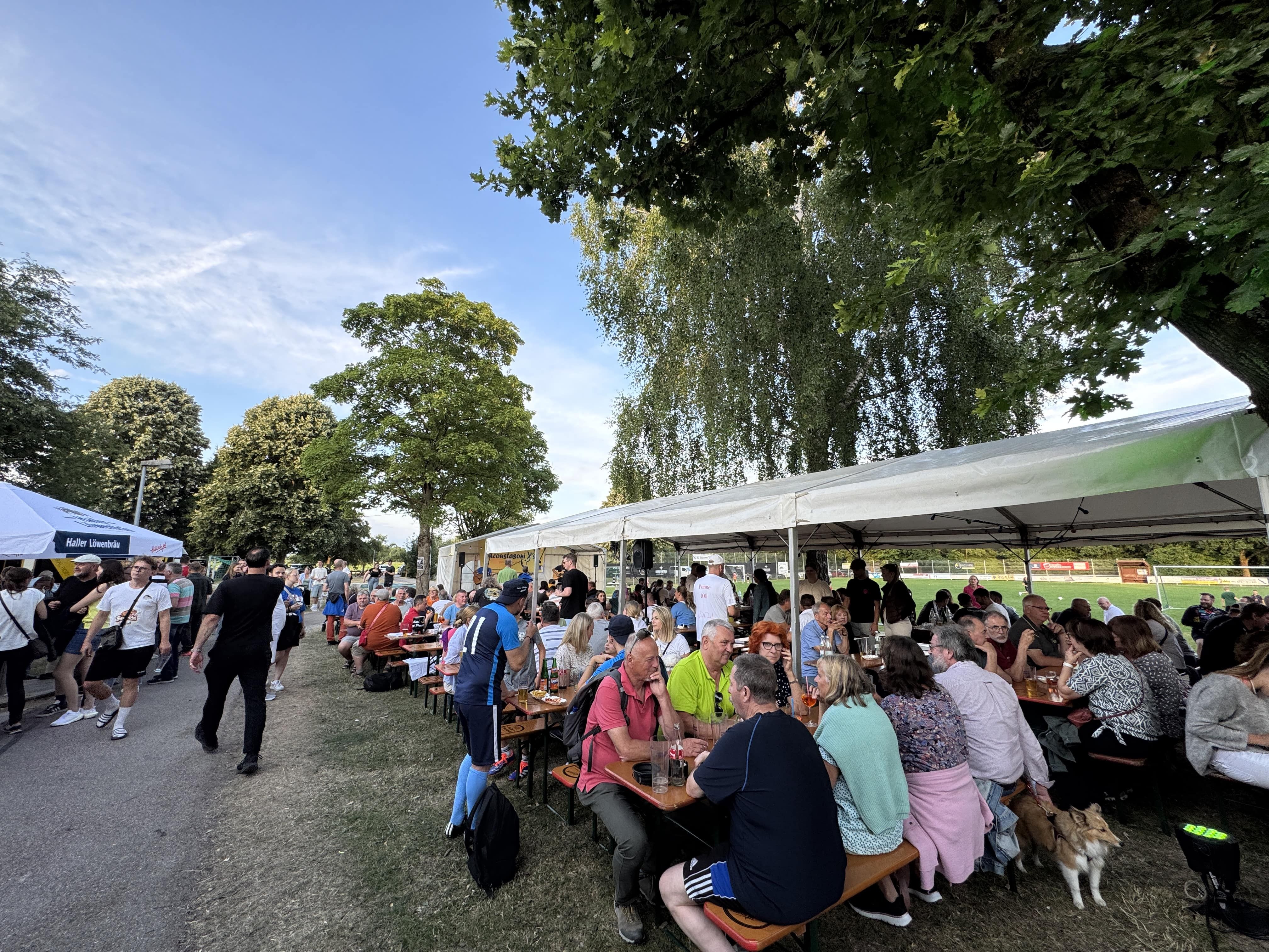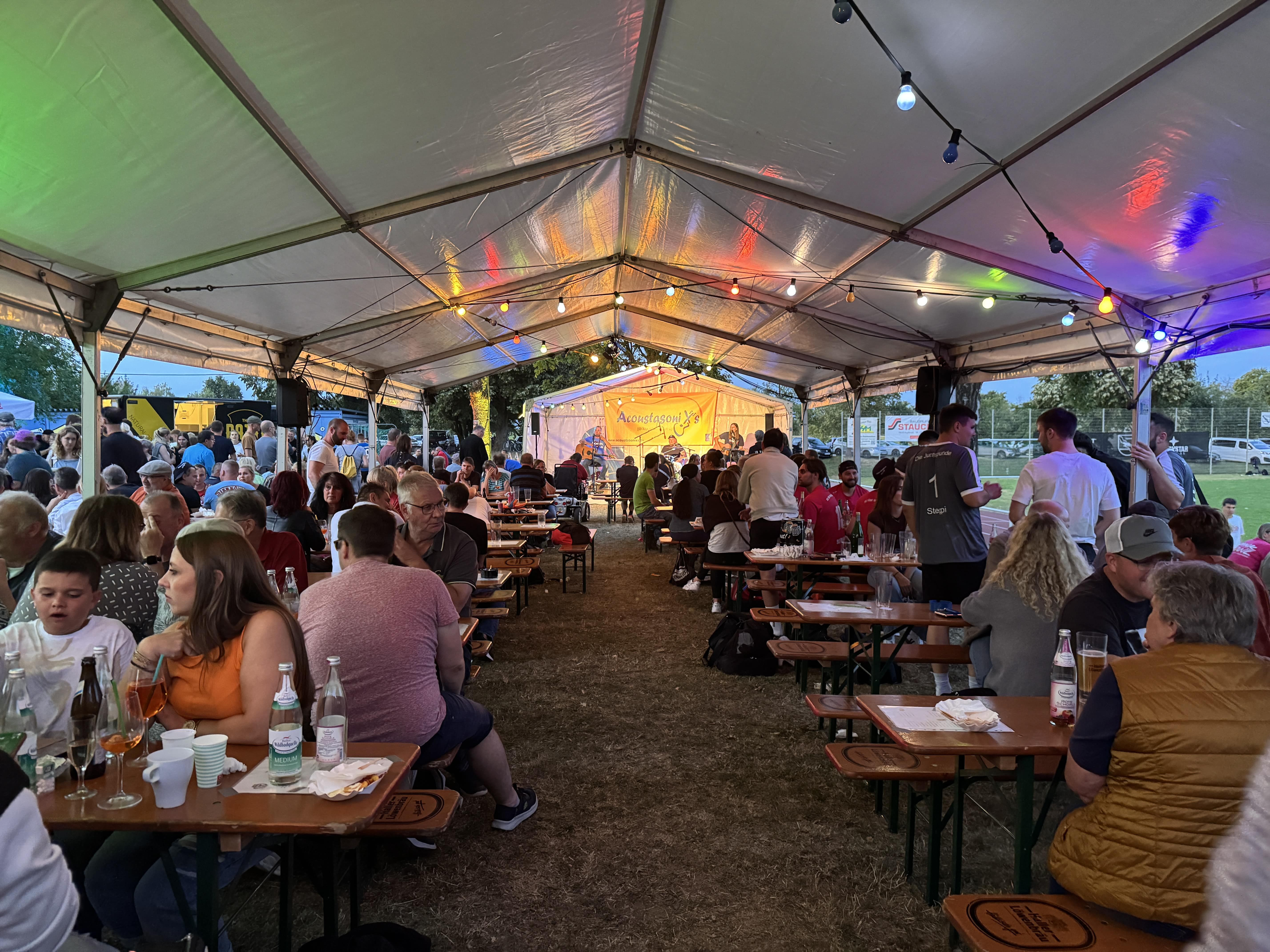 Bereits am Samstag sorgte bestes Wetter und eine einzigartige Festatmosphäre für gute und ausgelassene Stimmung auf dem Vereinsgelände. Publikumsmagnet war das beliebte Elfmeterturnier, bei dem zahlreiche Teams ihr fußballerisches Können unter Beweis stellten und sich packende Duelle lieferten. Im Anschluss lockten kühle Getränke an der Bar zum Verweilen. Die Band „Acoustasonixs“ begeisterte ab 20 Uhr mit einem mitreißenden Live-Auftritt. Bis spät in die Nacht wurde fröhlich gefeiert und getanzt.